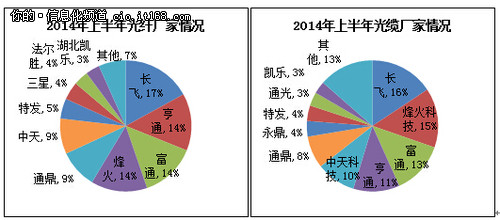圖2 2014年上半年國內(nèi)光纖廠家情況