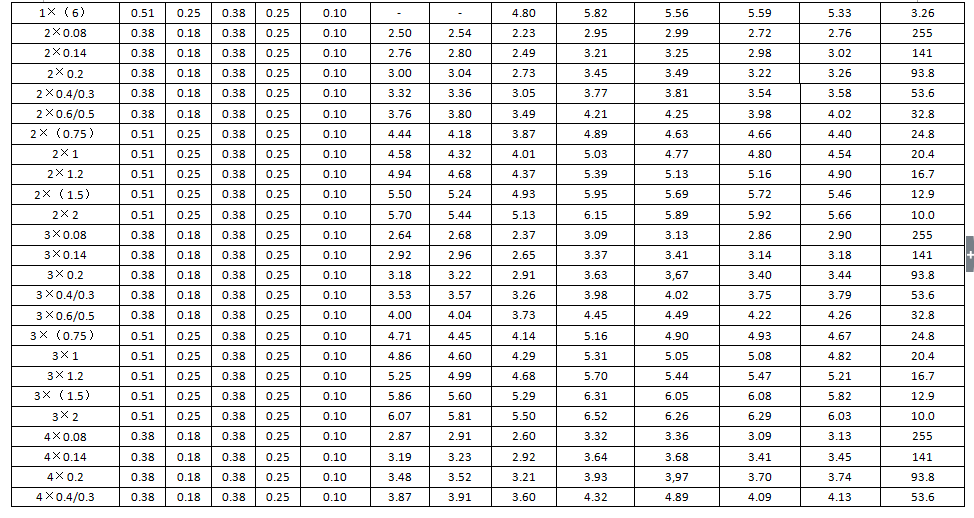 導(dǎo)體直流電阻 值Ω/km Conductor DC resistance |